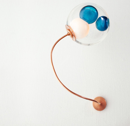 每个大型球体包含两个或三个照明元件,以及一个或两个花盆,供电和悬挂通过硬质铜管实现,无需考虑重力因素,可以弯折。有时,这些的铜管环绕着人造白色花盆,像是突破了明亮透明的玻璃球,逃脱了它的限制。